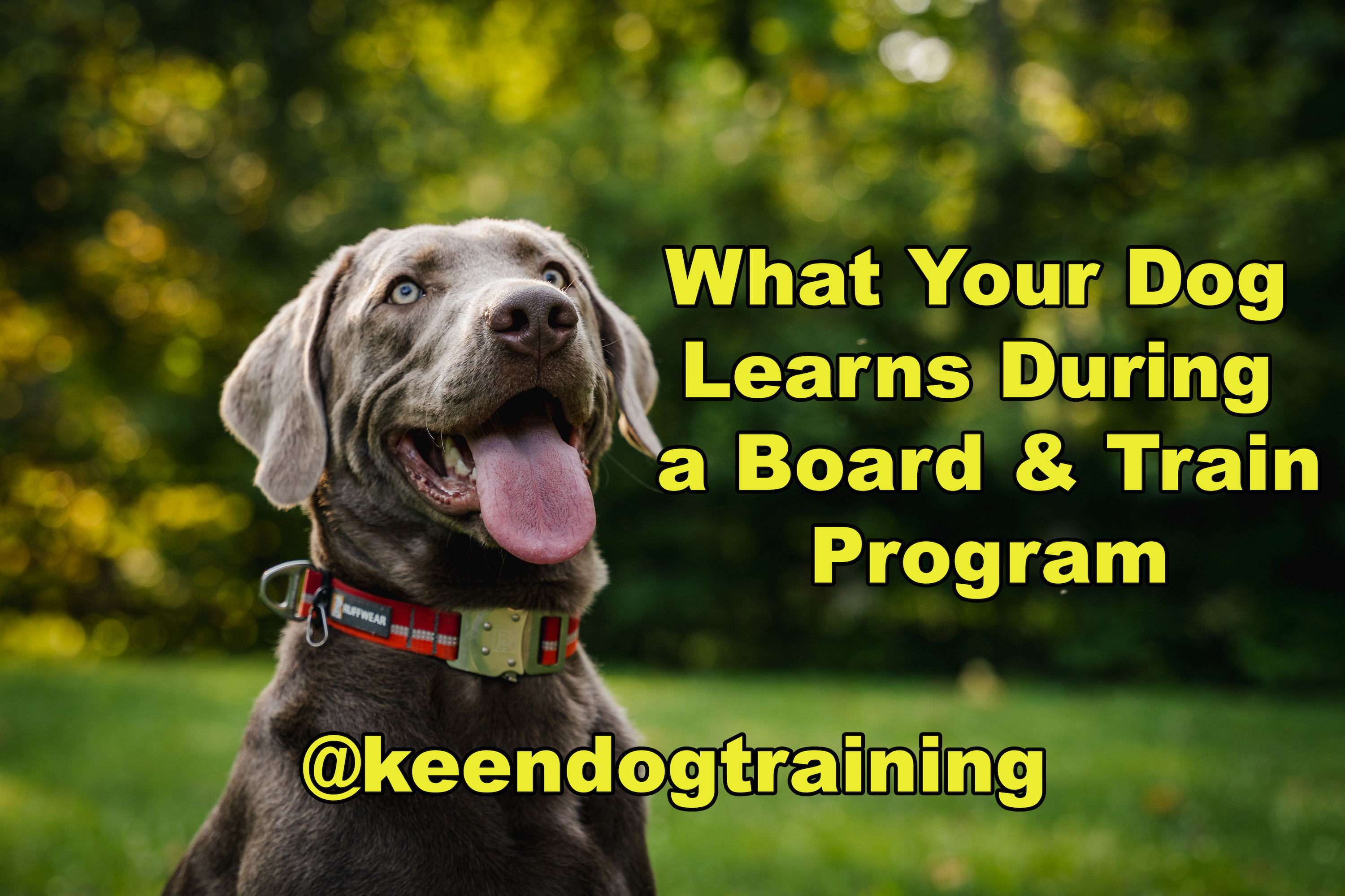 A board-and-train program is an immersive training experience where your dog lives with a professional trainer for a set period of time - our Keen Camp program is a 3 week program and our Comeback behavior modification board-and-train is 4 weeks (with additional weeks being a possibility). During that time, the trainer works on: